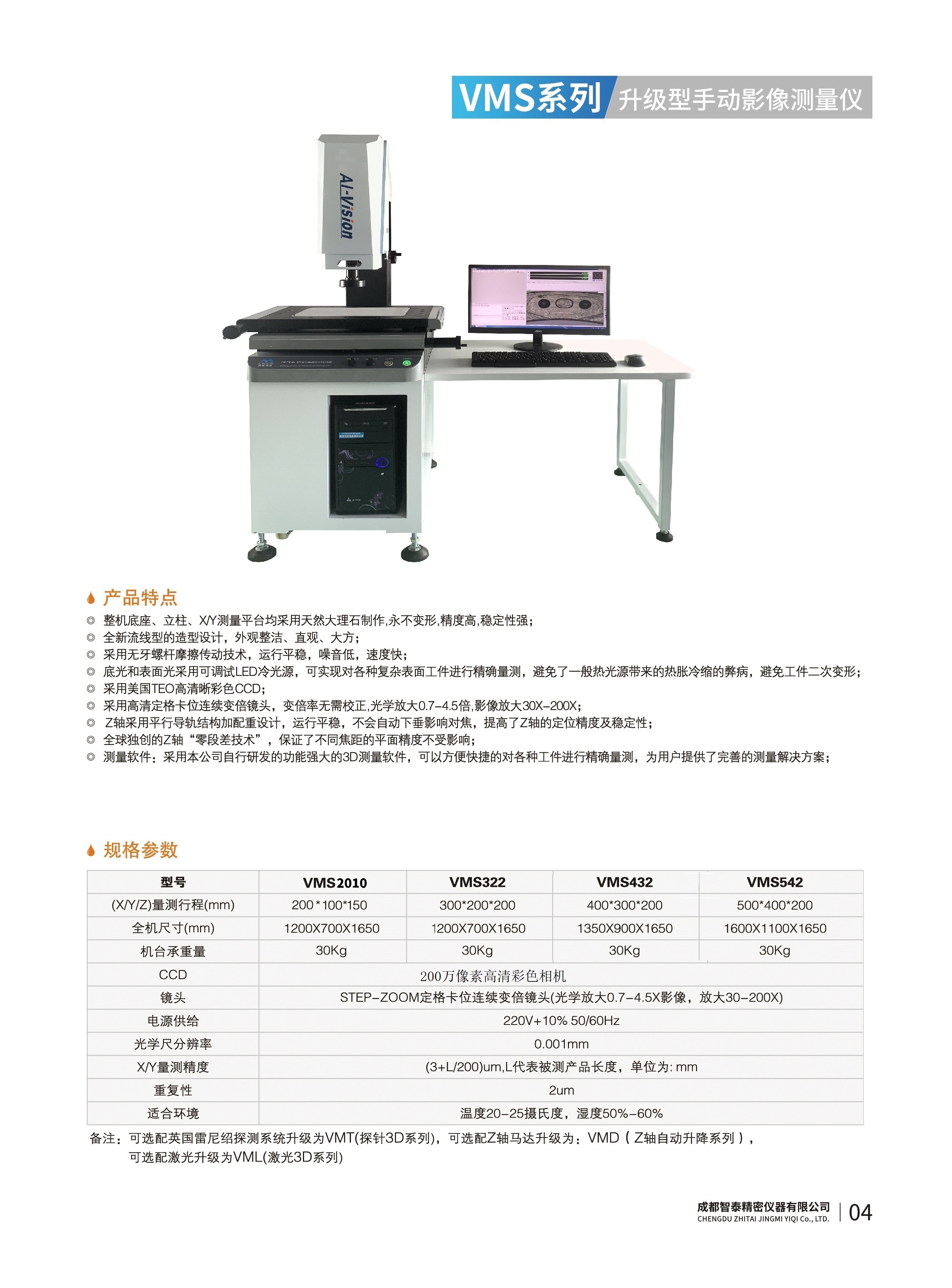 成都智泰精密儀器有限公司專注于精密測量儀器,人工智能,智能制造領域,專業(yè)從事智能視覺自動化檢測解決方案的貿易型企業(yè)。公司成立于2011年,位于天府之國成都,現有行業(yè)精英十余人,辦公倉儲面積200余平米。 公司主要產品為精密光學影像測量儀,精密輪廓形狀測量儀,精密機器人定位系統(tǒng),精密智能視覺尺寸檢測儀器,精密表面缺陷智能檢測設備,工業(yè)工程特種機器人。 公司憑借過硬的技術實力和產品方案,率先進入智能視覺自動化檢測領域,推廣以精密智能視覺自動化檢測為基礎的機器人自動化應用,公司不斷整合上下游的資源,擁有巨大的全產業(yè)鏈優(yōu)勢。客戶群體覆蓋了我國精密制造業(yè)的多數領域,包括航空、航天、軍工、汽車、新能源、光伏、食品,精密電子、精密機械、模具、PCB、LCD、五金、塑膠、醫(yī)療、教育、計量及科研院所等行業(yè)。 公司創(chuàng)新的產品能滿足生產與制造行業(yè)客戶的要求,訓練有素的工程師能及時提供多種技術服務,如解...